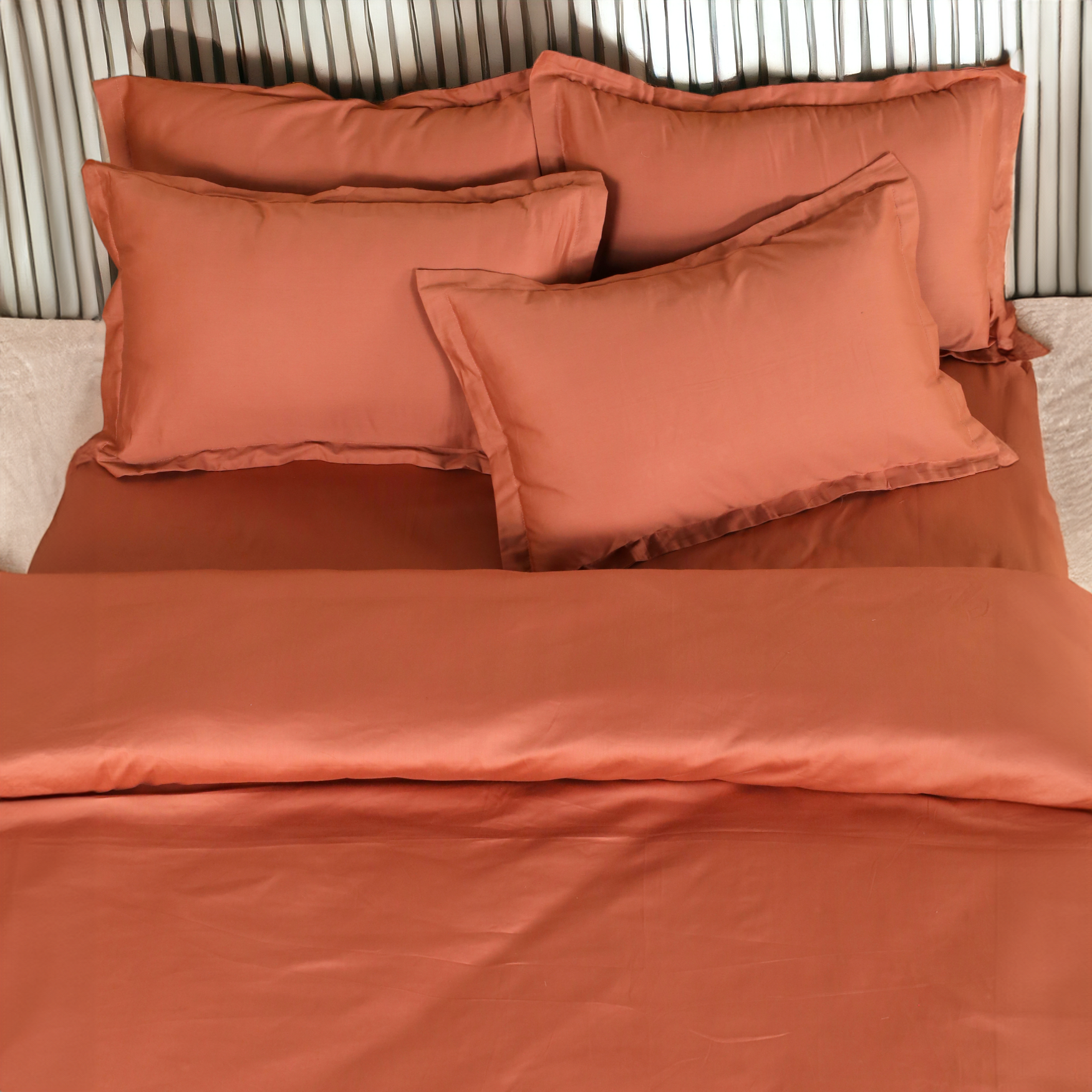Classic Italian Copper Red Solid Bedsheet Set - King Size