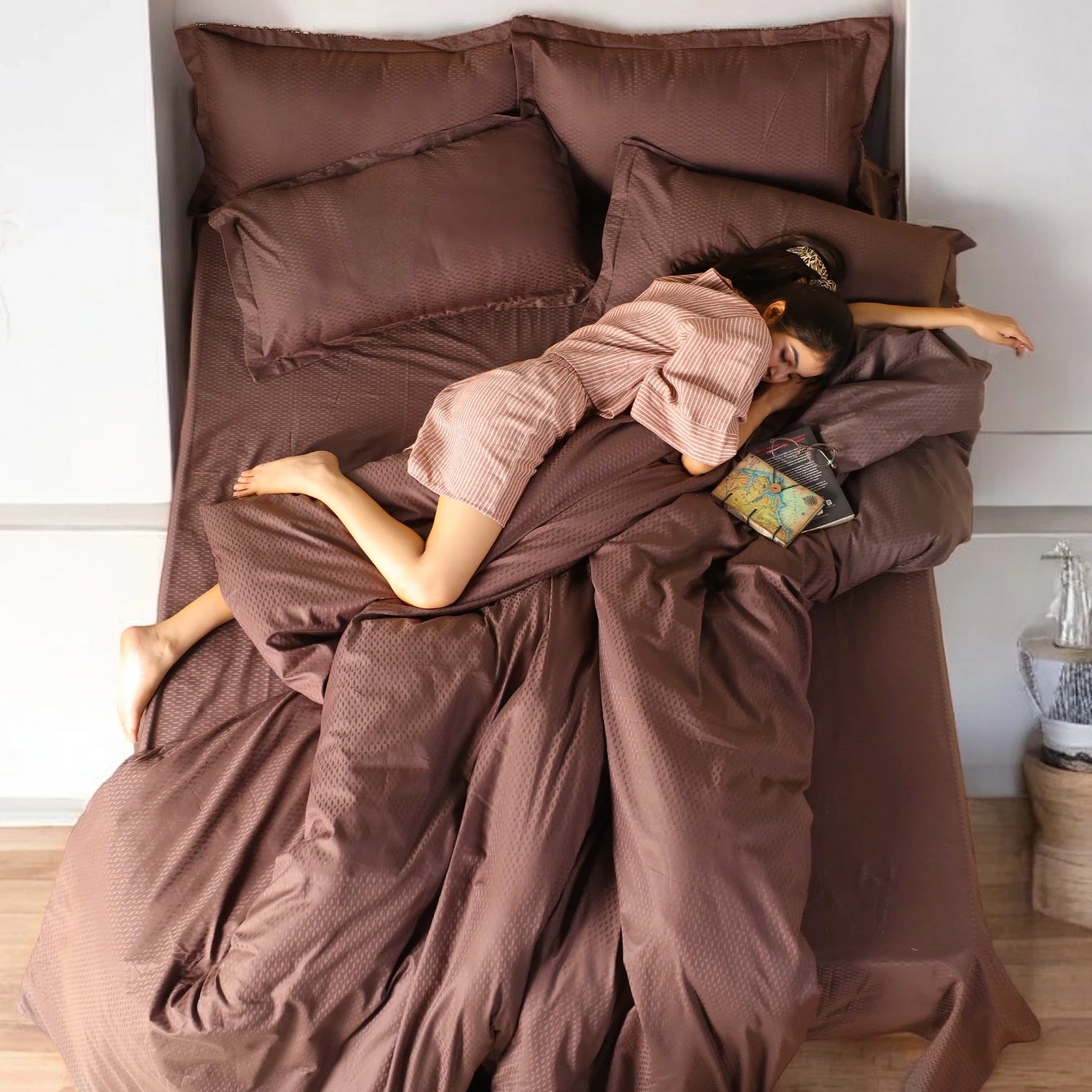 Infinity Dark Brown Jacquard Bedsheet Set - King Size