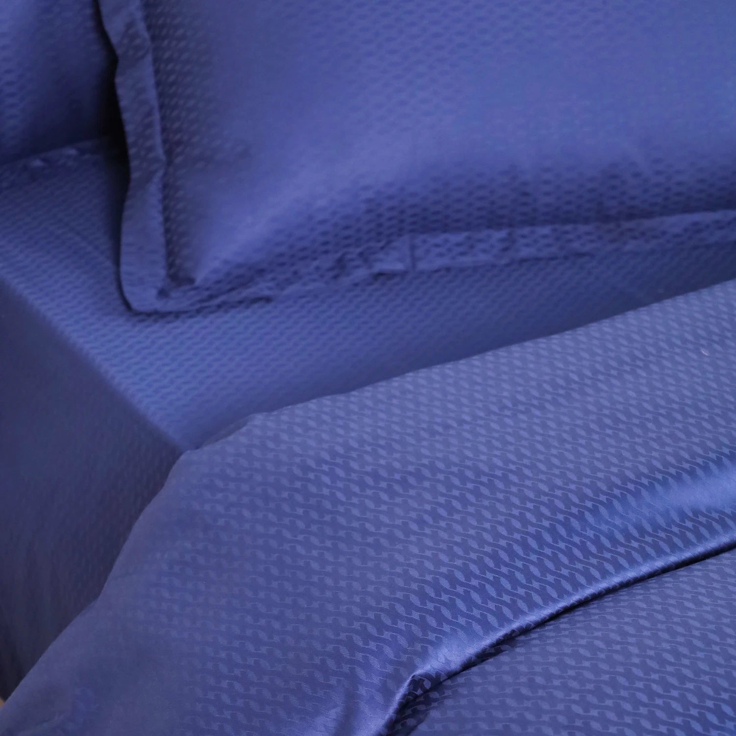 Infinity Midnight Blue Jacquard Bedsheet Set - King Size