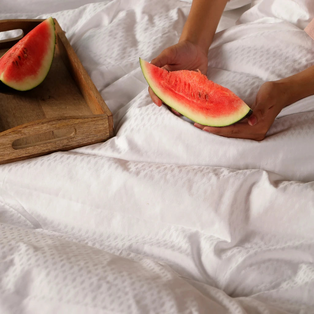 Our Infinity Jacquard collection is meticulously crafted using the finest Swiss cotton, ensuring every thread is woven with care. The result is bedding that not only looks luxurious but feels incredibly soft and durable. Experience the unparalleled comfort and elegance of our high-quality linens, made to transform your bedroom into a sanctuary of relaxation.